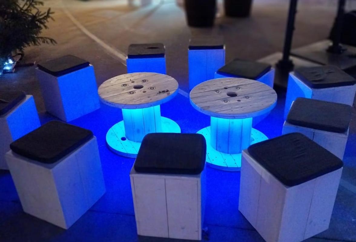 - Zitstoelen, banken en poefjes (ook verlicht)