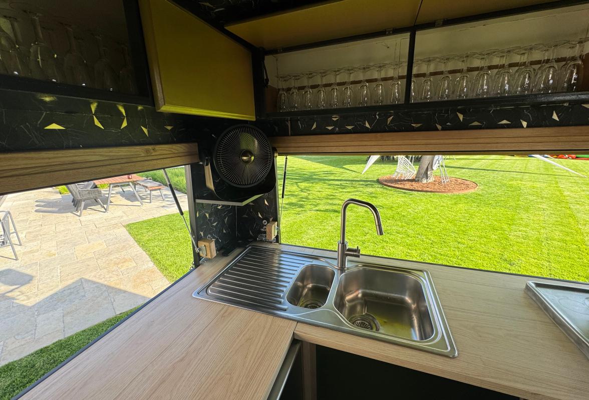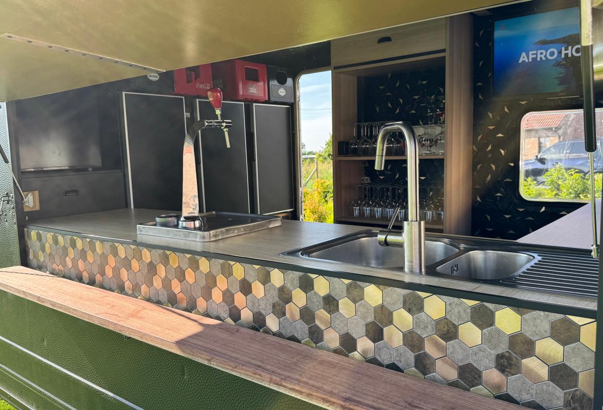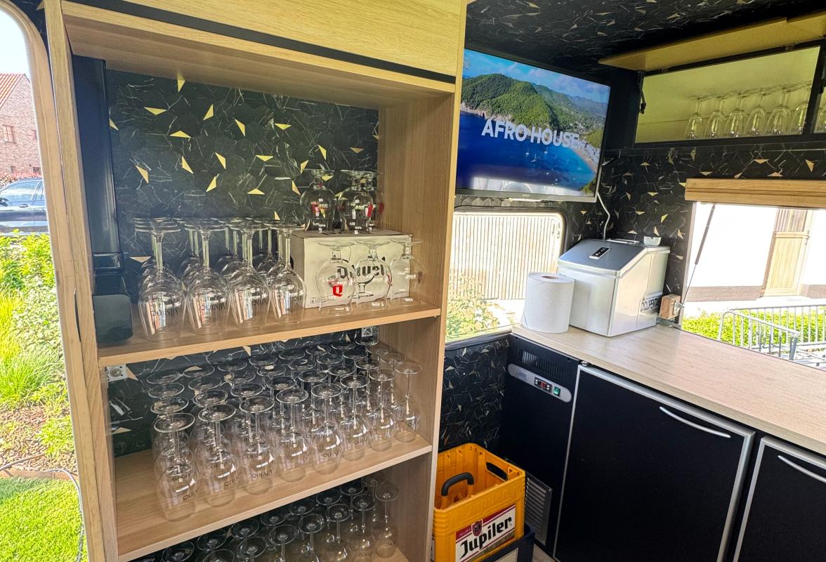 De LiNo Bar is volledig uitgerust voor elk geslaagd feest of event. De bar beschikt over een professionele biertap, een stijlvolle toog en professionele horecafrigos met plaats voor maar liefst 20 bakken. Verder zijn ook een diepvries, ijsblokjesmachine en bonen koffiemachine aanwezig. Voor extra comfort is er een wasbak met warm water en een muziekinstallatie met Bluetooth, DAB, Spotify en FM. Ook een Smart TV, mobiele verwarming, een ventilator en sfeervolle ledverlichting maken deel uit van de uitrusting. Daarnaast is er volop kastruimte voorzien voor het netjes opbergen van glazen en ander materiaal.